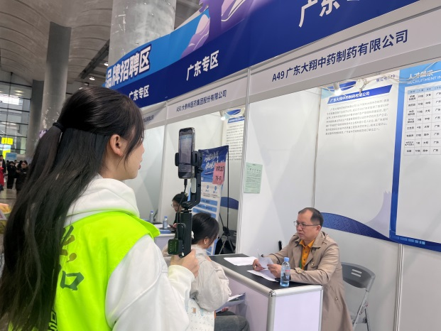 本次招聘会聚焦劳务品牌建设,搭建了高效的供需对接平台。广西组织方创新采用“直播带岗”模式,现场直播工作人员对大翔中药的招聘岗位进行全程实时播报,详细解读企业发展前景、岗位需求、薪资福利及职业发展路径。直播间内,观众互动热烈,咨询提问源源不断,有效扩大了招聘覆盖面,提升了岗位对接效率,让广西地区的求职群体全方位、多角度了解大翔中药的招聘需求与企业魅力。